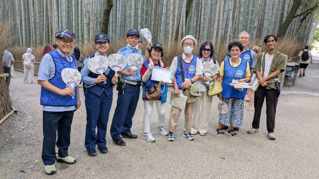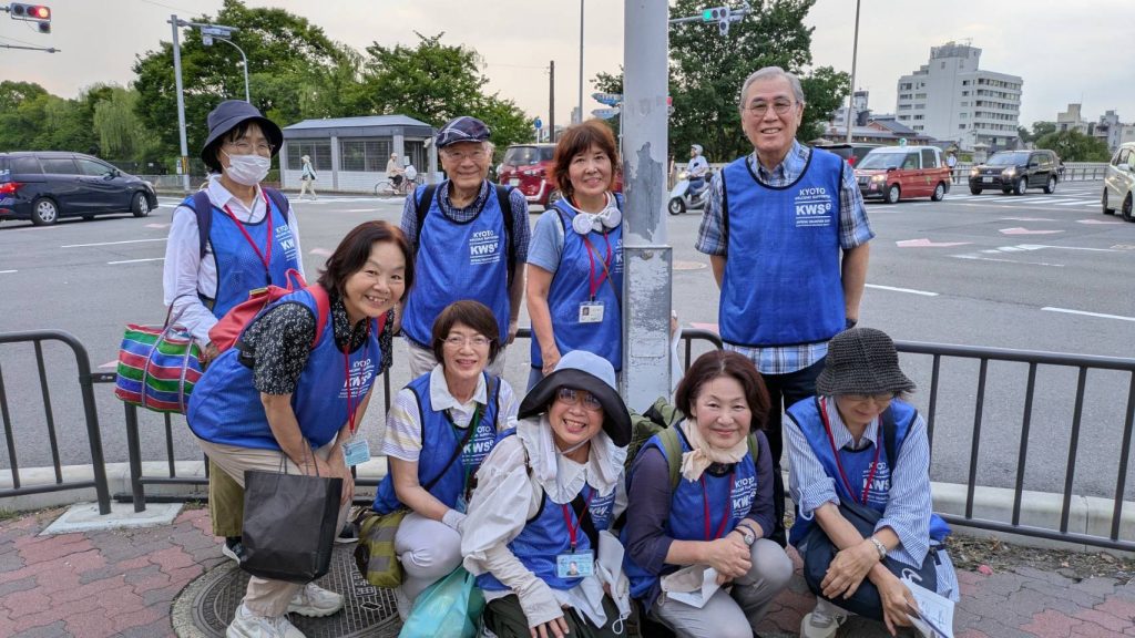 養成講座のターゲットであった2020両オリンピック年での街角案内は叶いませんでしたが、警察署の交通安全指導のお手伝い、京都市が関与するイベントでの街頭案内、国際イベント参画、街角や主要観光駅での案内等、外国人訪問者への英語によるヘルプを日常の主要活動として取り組んでおります。また、現在、外国人旅行者個別案内に向けた活動の準備も進めております。